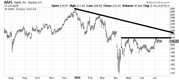 The question is if Apple AAPL will rally. It has certainly been a laggard but if it can stay over $207 and then get over $215 that might catch folks by surprise. It still hasn’t filled that gap from March.
