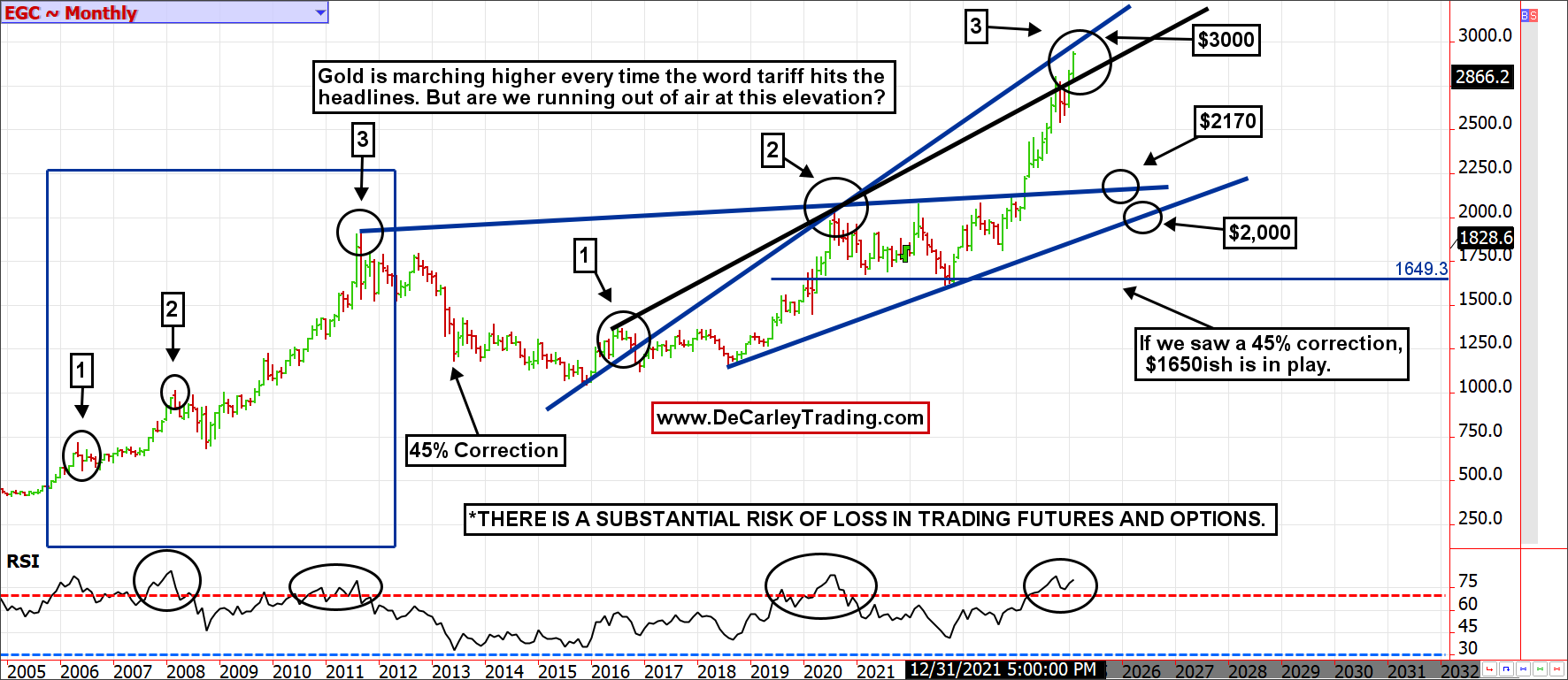 For years, we’ve been bombarded with commercials that entice us to buy physical metals, primarily gold, to hedge against uncertainty. It is touted as a way of accumulating and building wealth. Except for a lost decade following the 2011 blow-off top in gold, it has delivered on the promise for those who were diligent, patient, and willing to hold a so-called safe-haven asset through a nearly 50% drawdown. However, with gold prices quickly approaching $3,000 per ounce, we are starting to see those with memories of the global financial crisis and the eventual toll it took on gold holders considering selling their gold position to cash in on their endurance.