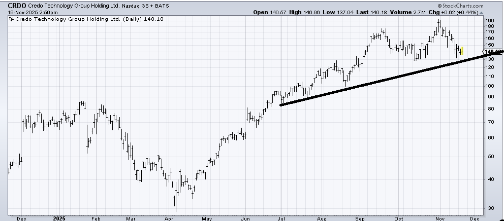 Credo (CRDO) had better hold $130. What would be bearish is if it has a pathetic rally to say $160-ish and then turns down because that would set up a head and shoulders top. But for now, I would just use a stop under $130.