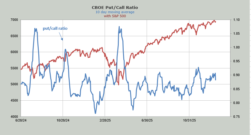 The 10-day moving average of the put/call ratio is heading down. While I hate to rationalize a move, this current turndown is because 10 days ago the put/call ratio was 1.13, which we dropped off the moving average Thursday.