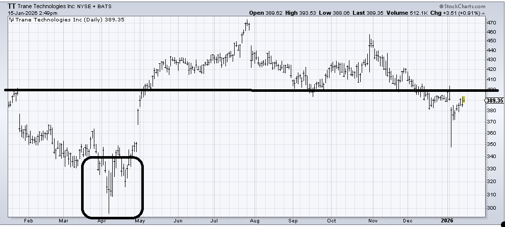 Trane Technologies (TT) tagged $350 early in the year, which managed to fill the gap (from last April) and met a downside measured target. It’s going to take some work to chew through the resistance overhead now but pullbacks should improve the chart. Notice on the left side of the chart the way the stock formed a "W." I would love to see a similar pattern.
