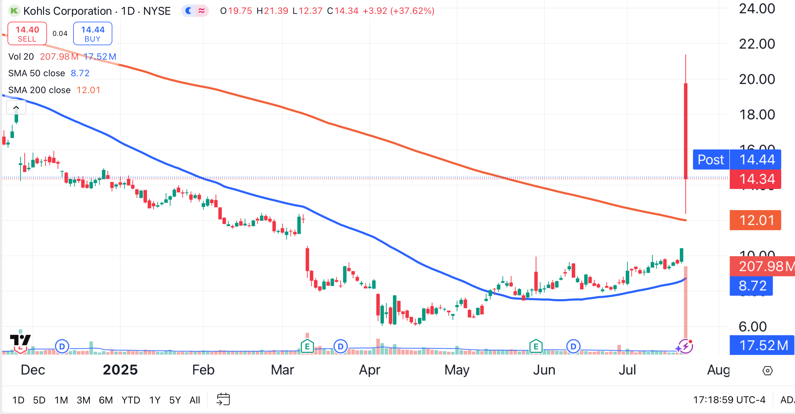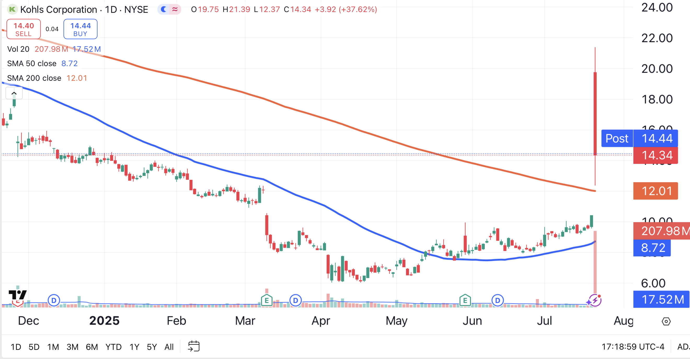 Shares of Kohl’s KSS jumped 37.8% on Tuesday, as the Menomonee Falls, Wisconsin-based retailer caught the attention of meme stock traders.