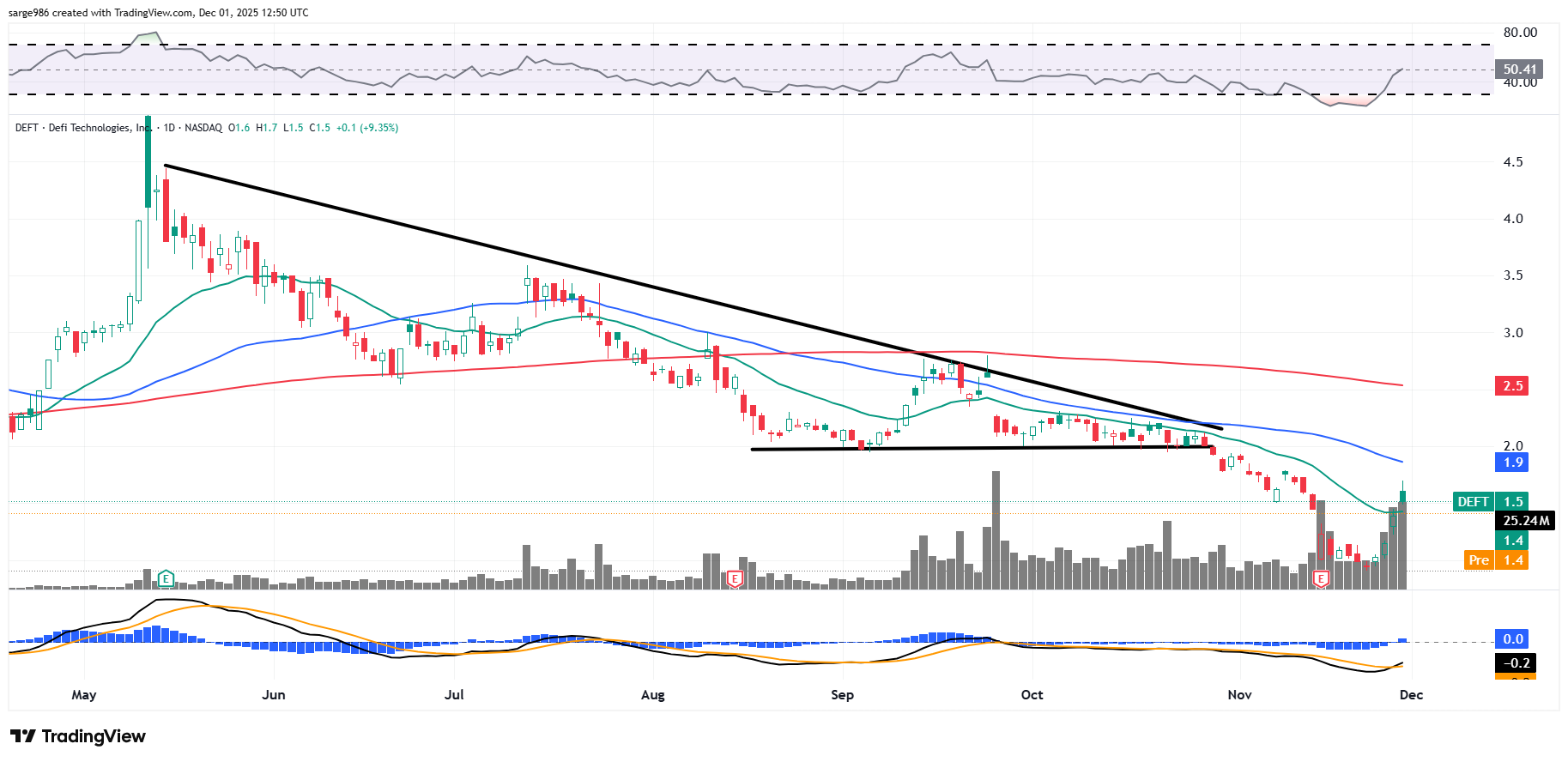 It means I added quite a bit to my long position in order to get out when we saw a rebound in the price of Bitcoin. The first part of this strategy worked like a charm. I was able to get my average price down to $1.08 by taking on more risk than I probably should have. Did I trade the stock perfectly? No. DEFT traded as high as $1.70 during the half-day session on Friday. I talked to the colonel about getting flat that position and decided to stick with it. That was a mistake.