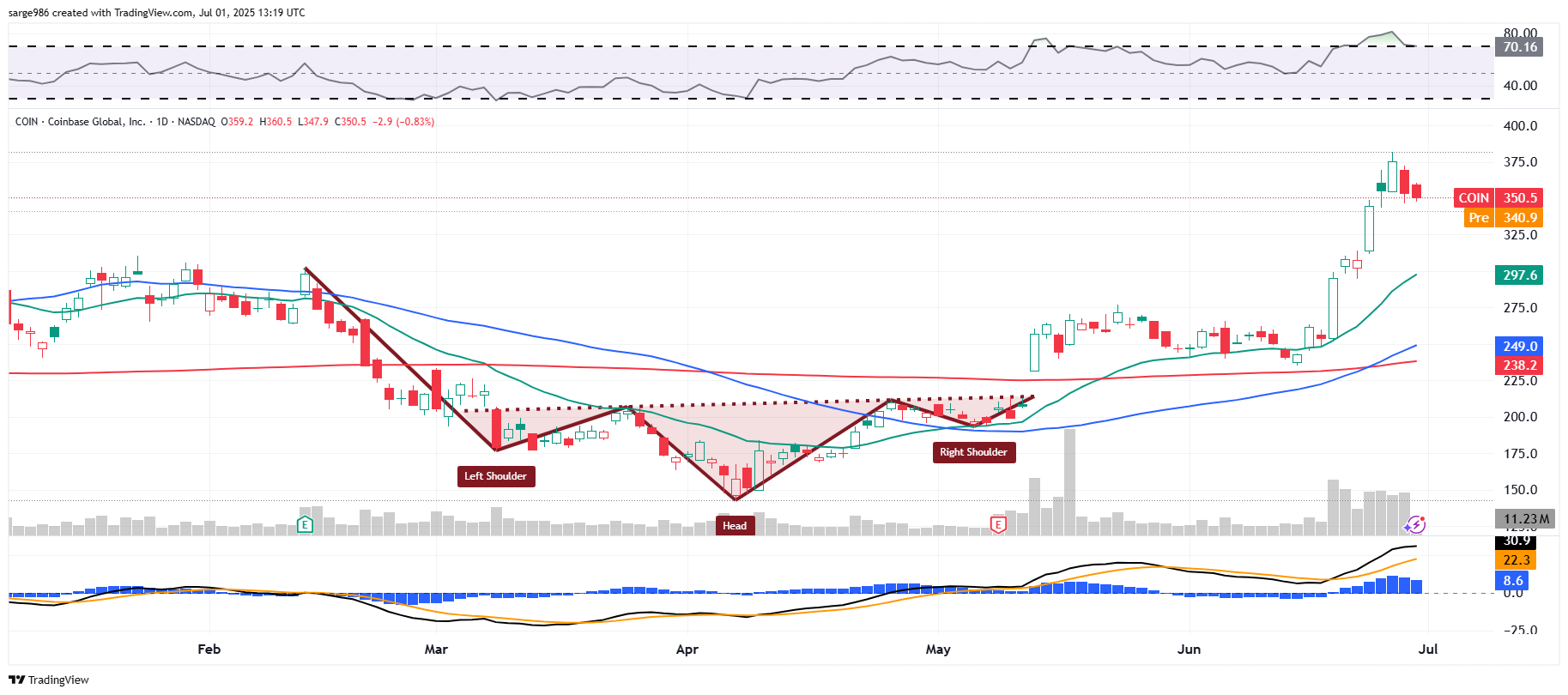 COIN has a made quite a run, so is it too late to play? Here's my take, my suggested move, and my read of the cup pattern on the chart.