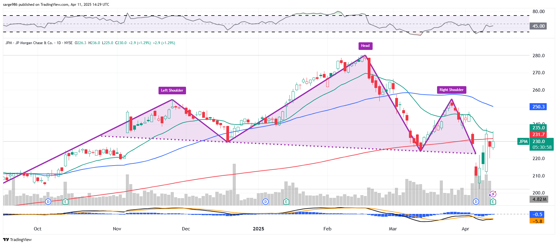 This is the deal. The stock has hit resistance for consecutive days at its 200-day SMA (simple moving average). Should JPM take and hold that level, not just me, but every portfolio manager with an interest in the name will be trying to increase long-side exposure. That's it. That's the pivot. Take the 200-day line and shoot for the 50-day SMA up around $250.