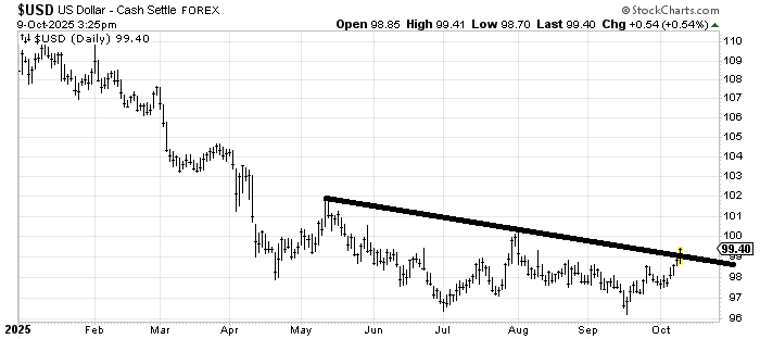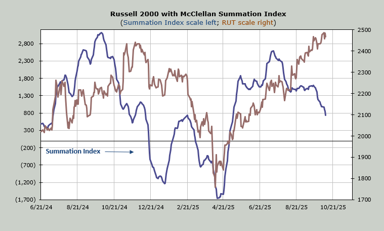 The indicators, as I have said, have mostly not participated in the rally since August. The McClellan Summation Index, which I believe represents the majority of stocks, went sideways for six weeks and then instead of firming up it went down and is still heading down.