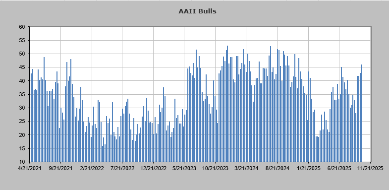 On Thursday we saw the AAII folks join the bull parade. Oh, don’t worry, they have not thrown caution to the wind. But the bulls are higher than they were in early July, which is the highest since just after the election.