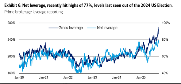 We know the Citi Panic/Euphoria Model is in Euphoria. We know the insiders have been selling. In terms of exposure the NAAIM folks are not overexposed, as they stand at 84. But when to comes to hedge funds, let’s not use gross leverage since that looks very extreme. Let’s use net leverage and we can see that is now where it was right after the election, according to Bank of America. In other words, these folks are mostly all in.