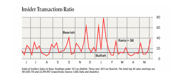 Finally, the only other change is that the Insider selling has picked up with the ratio now at its highest level since January (but not that high).