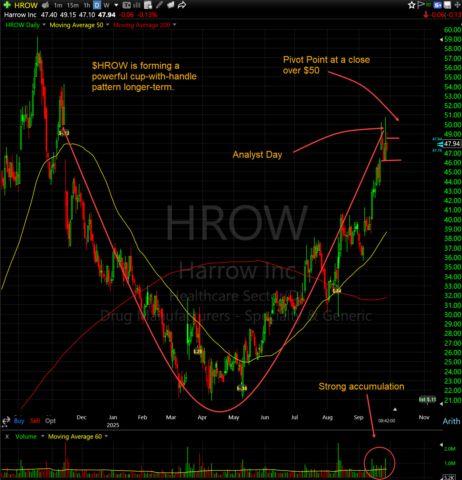 My primary focus is currently on names that will react well to third-quarter earnings reports. My top play is Harrow, Inc. (HROW). As I mentioned on September 23, it is my largest position and still is at this point.