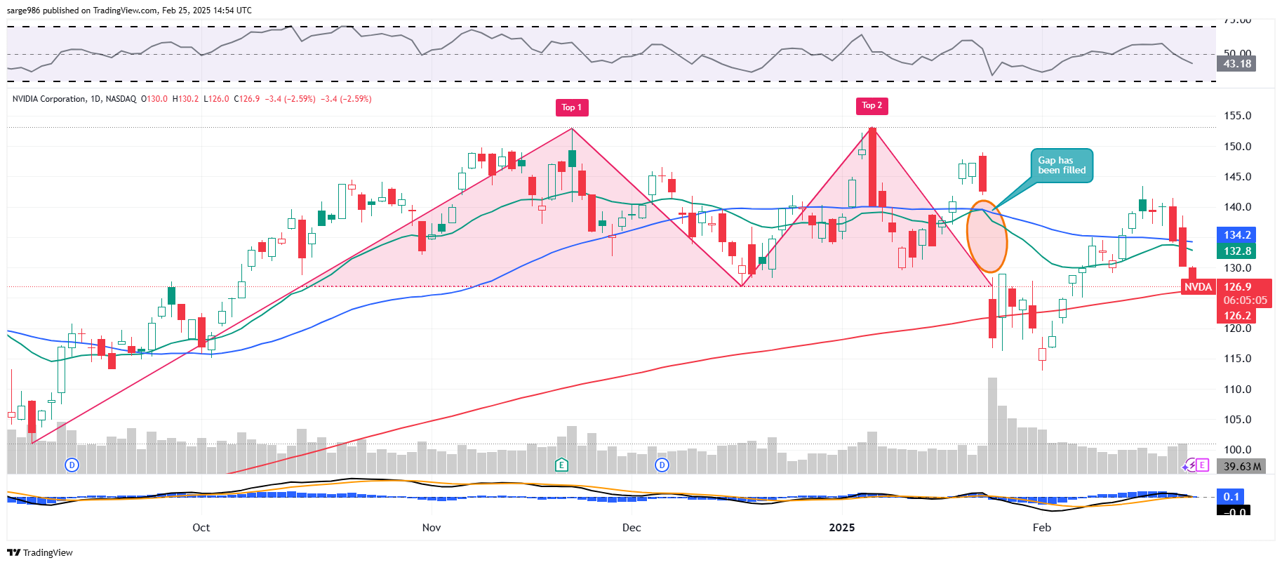 This is a mixed bag of shells right here. Readers will easily see a double-top pattern of bearish reversal that appeared to work spectacularly as the DeepSeek news made headlines.