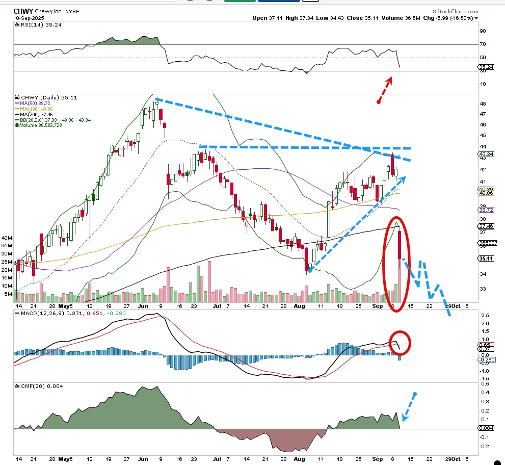 Chewy and two other names all broke hard recently and the selling is likely not over.