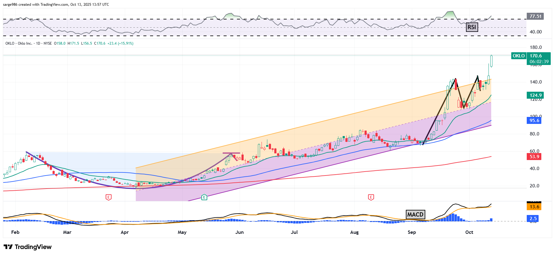 OKLO just smashed through the $169 target price. Do a lot of other guys give you accurate target prices and how to adjust when reached? ​Funny thing, Bloom Energy is now up 23% on its own deal. OKLO is up 16% on Bloom's deal because of what it implies. That's impressive.