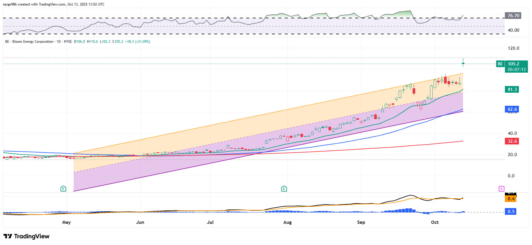 Bloom Energy (BE) skyrocketed more than 25% in pre-opening trade on Monday after announcing a $5 billion strategic partnership with Brookfield Asset Management (BAM) .