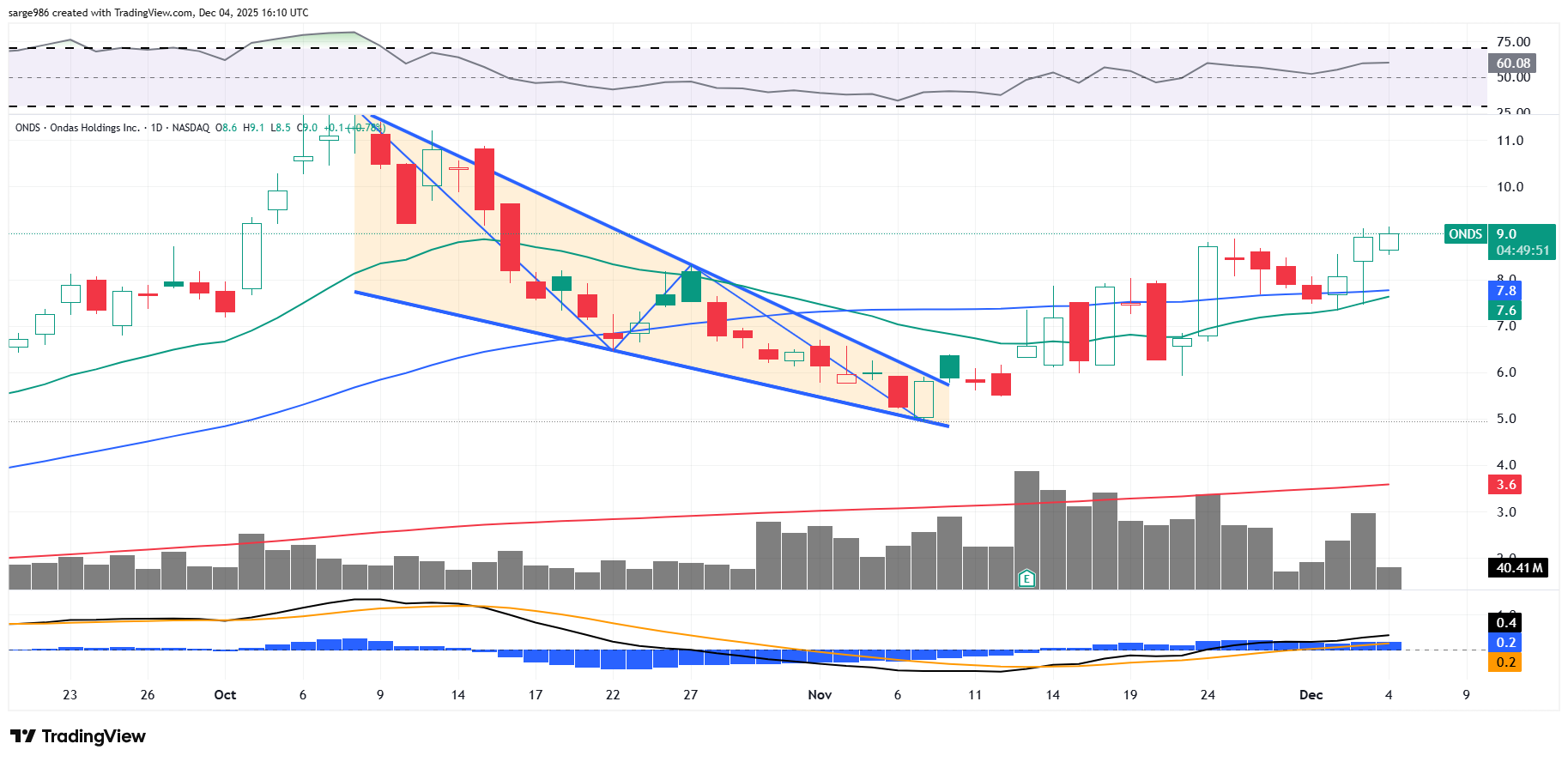 "What really matters is what ONDS can do as the share price makes a new approach on the 21-day EMA and 50-day SMA. Why do I think it worthy of speculation? Look at the increased trading volume since late October. Somebody big defended the stock at these levels. Should the stock make a new post November 7 low, I take my football and I go home. (That means I get out of the stock.)"