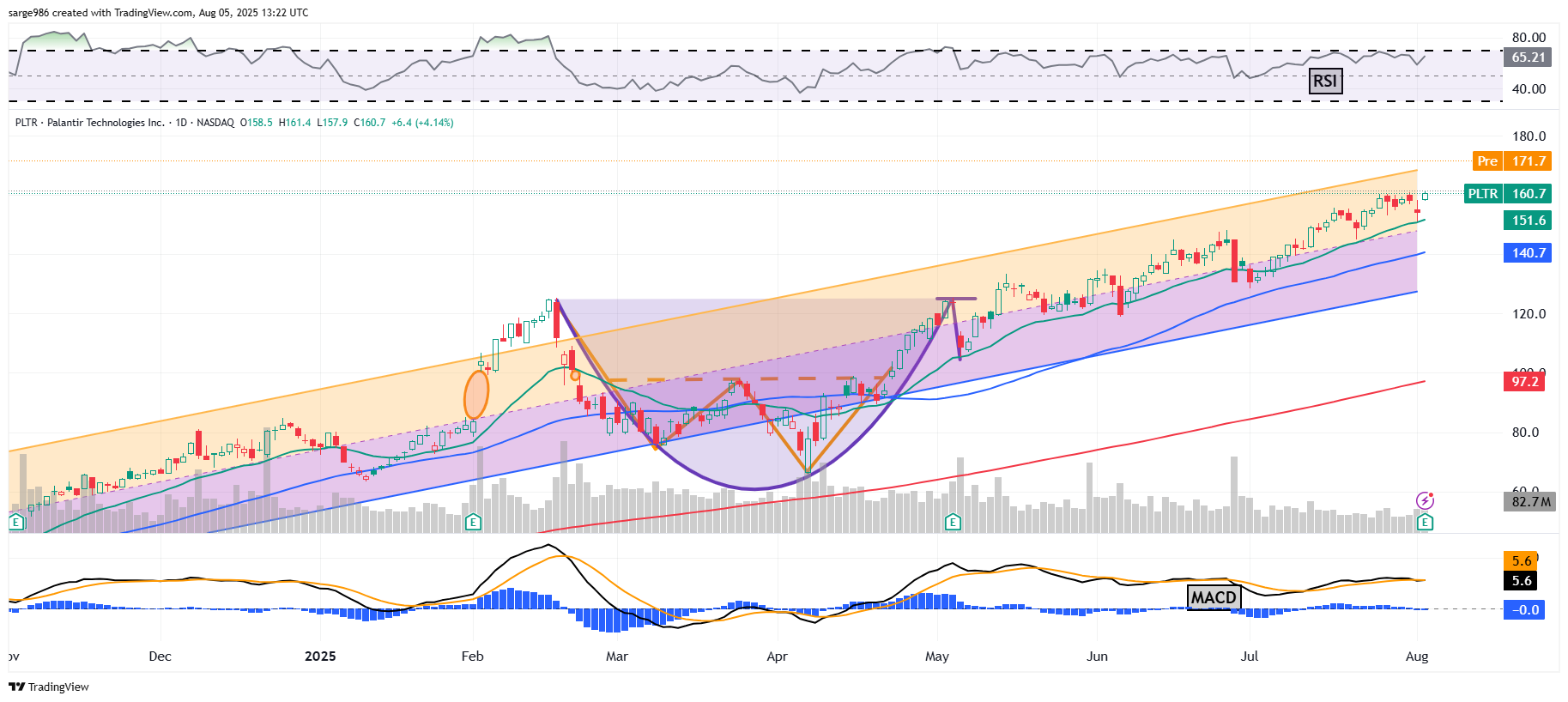 Add: From 21-day EMA (currently $153) down to 50-day SMA (currently $142).
