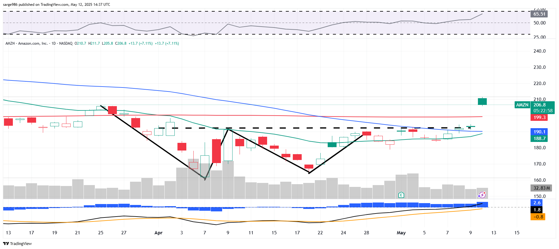 Some readers know that I had a family emergency on Thursday night and that I never made it to work on Friday. I never even thought about work on Friday. That said, as tariffs came down sharply, e-commerce retailer Amazon, took off just as sharply. Is it too late to hop aboard this running train? The stock is up 7.8% from its Sunday close but is off of the highs. Let's take a look.