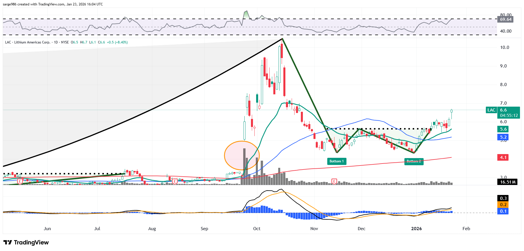 The share price of Lithium Americas (LAC) ​ is up 14.7% since I had last written on the stock on January 12. Earnings are not due until early March. As we know, there will be no sales. This is a future play on the mine at Thacker Pass and the U.S. Department of Energy's involvement. The move, while nice, does not impact my target price.