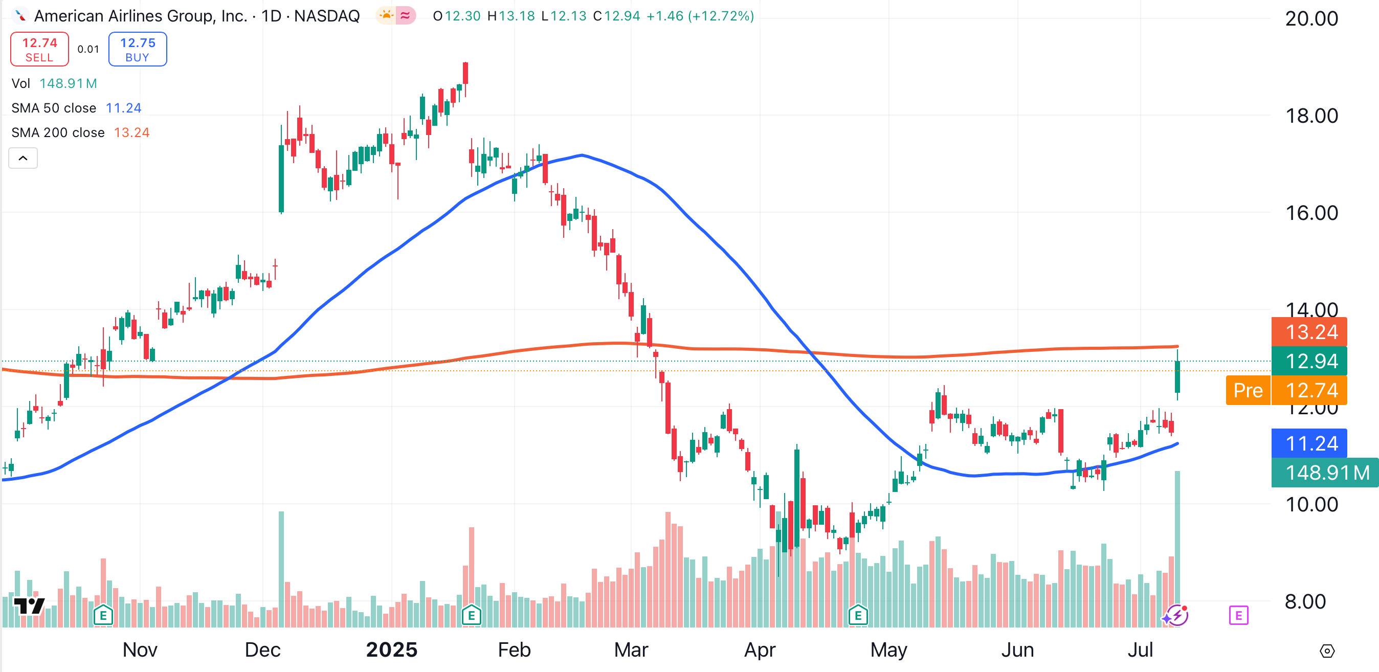 Due to its relative weakness, we’ll give American a conservative price target of $15. That figure represents a 15% gain from Thursday’s close. American Airlines is scheduled to report earnings on July 24.