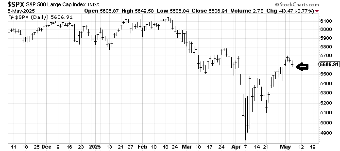 In the meantime, there is a little gap just under where we closed (5569) on Tuesday. The one thing you don’t want to see is an opening gap down under that with no recovery, because that would leave the last four trading days as an island.