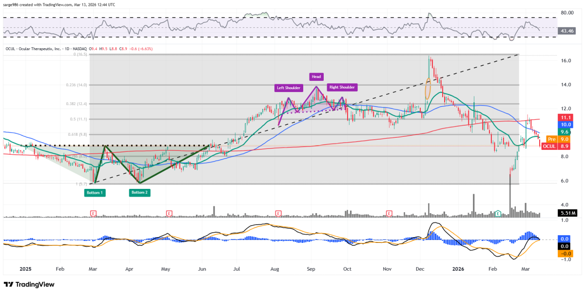 OCUL closed at $8.87 on Thursday night, off 6.6% for the day. The stock is down 18.6% since I wrote that article. Those in the name alongside me, I am sure, are well aware that in that piece, I upped my target price from $13 to $18. I added that I was a buyer down to the February low of $6.19. I have put my money where my keyboard was and did add to my long position overnight.