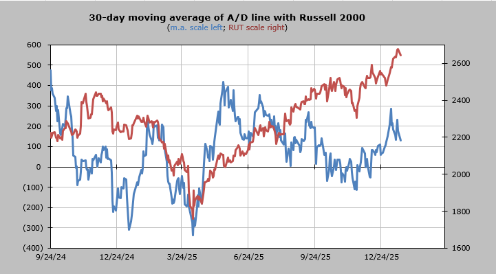 The 30-day moving average of the advance/decline line got overbought last week.