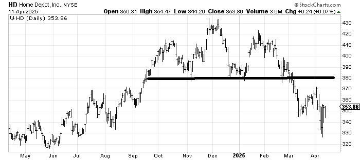 Home Depot HD met its measured target from that head and shoulders top when it tagged 330 last week. Quite frankly, it acts better than it ought to. It needs to get over 360 to show me not only has the selling dried up but there is some buying too. For a trade, it ought to get over it.