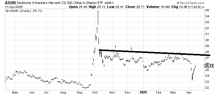 ASHR an ETF to be long the Chinese A shares almost filled that gap from September, but the chart has so many gaps I wouldn’t put a lot of stock in it. What I would note is that there is so much resistance between 26-27 now. It’s hard to imagine it can plow right through there.