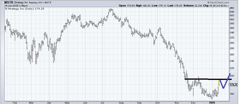 It’s possible Strategy (MSTR) trades like I have drawn in but to be fair, there is a measured target much farther down that is unfulfilled so if it can’t map out like this, I’d get very concerned.