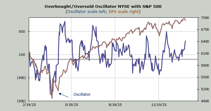Then there is the 493 crew. As long time readers know, the Overbought/Oversold Oscillator I use is based on breadth not price. Breadth has been positive for eight of the last 10 trading days. If breadth is positive on Thursday, then we’ll be at nine out of 10 and that is what makes us overbought starting Friday.