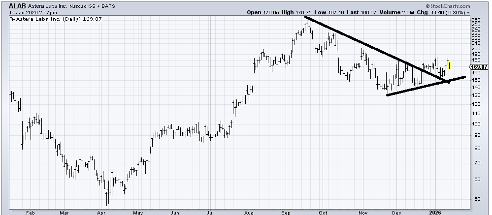 Astera Labs (ALAB) has my interest. As long as it stays over 150 I want to see if this chart can get going on the upside. It’s trying to saucer under, or feels that way to me.