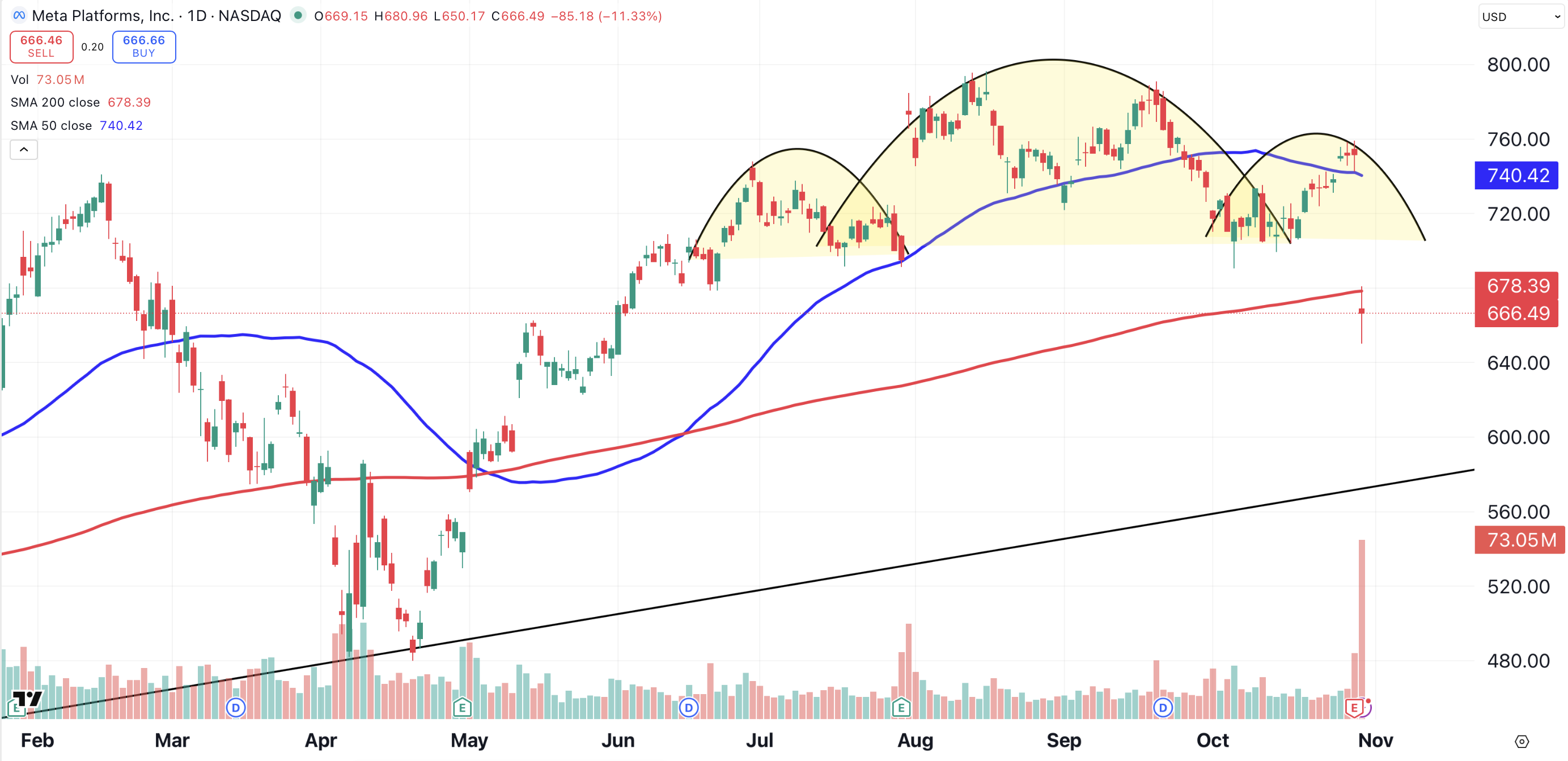 Meta Platforms Loses 200-Day MA
