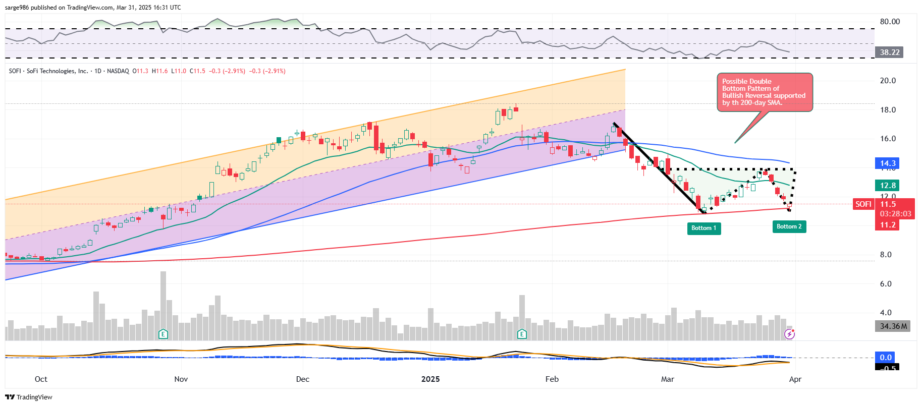 Readers may recall that I wrote up a piece about two weeks ago, where I informed readers of my plan to add to my SOFI long if the shares tested their 200-day SMA. At that time, the 200-day SMA stood at $10.90. Monday morning's low for SOFI was $10.98. The stock's 200-day SMA is now $11.20.