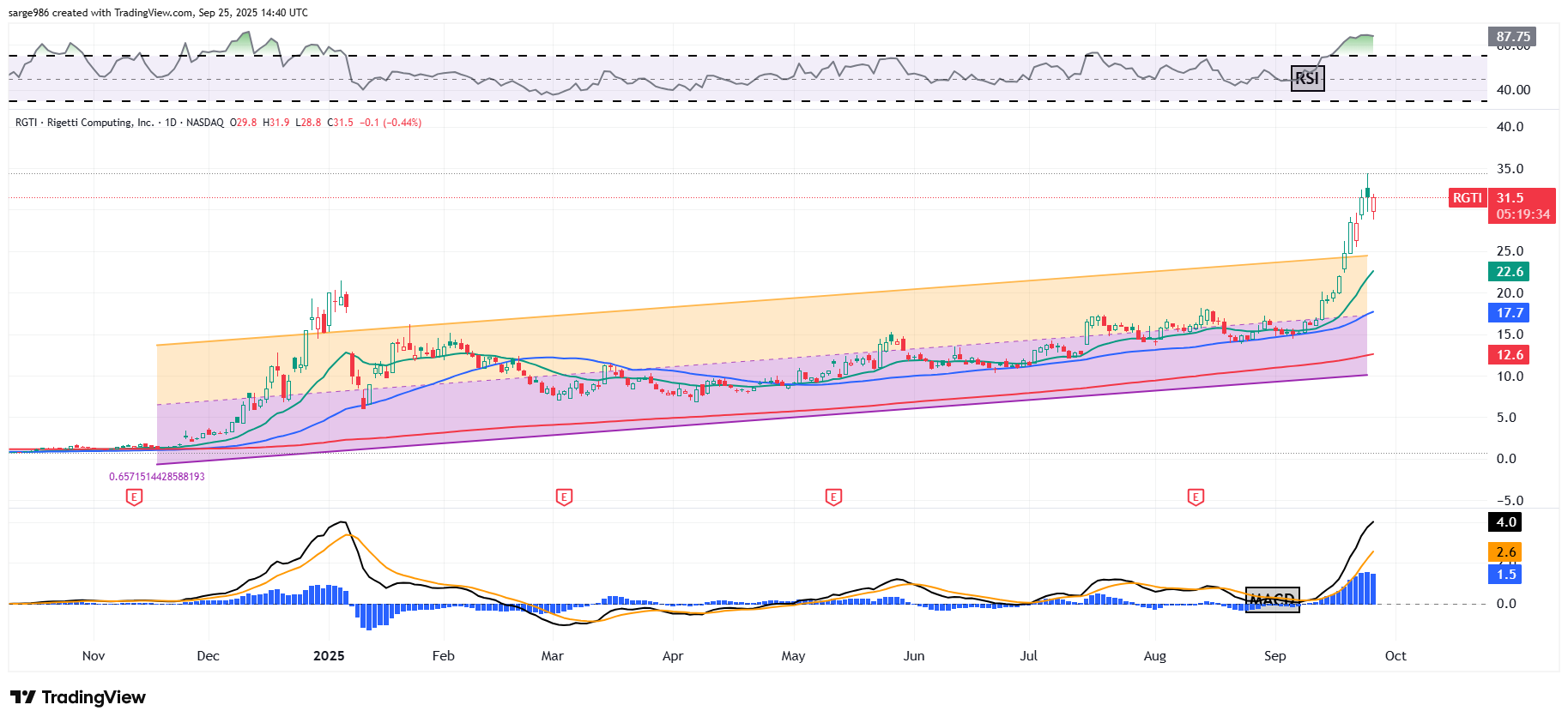 What we have here is Rigetti's second attempt to break out and run in about 10 months. ​This time, however, there is a well-established upward-sloping trend in place illustrated by this Raff Regression model.