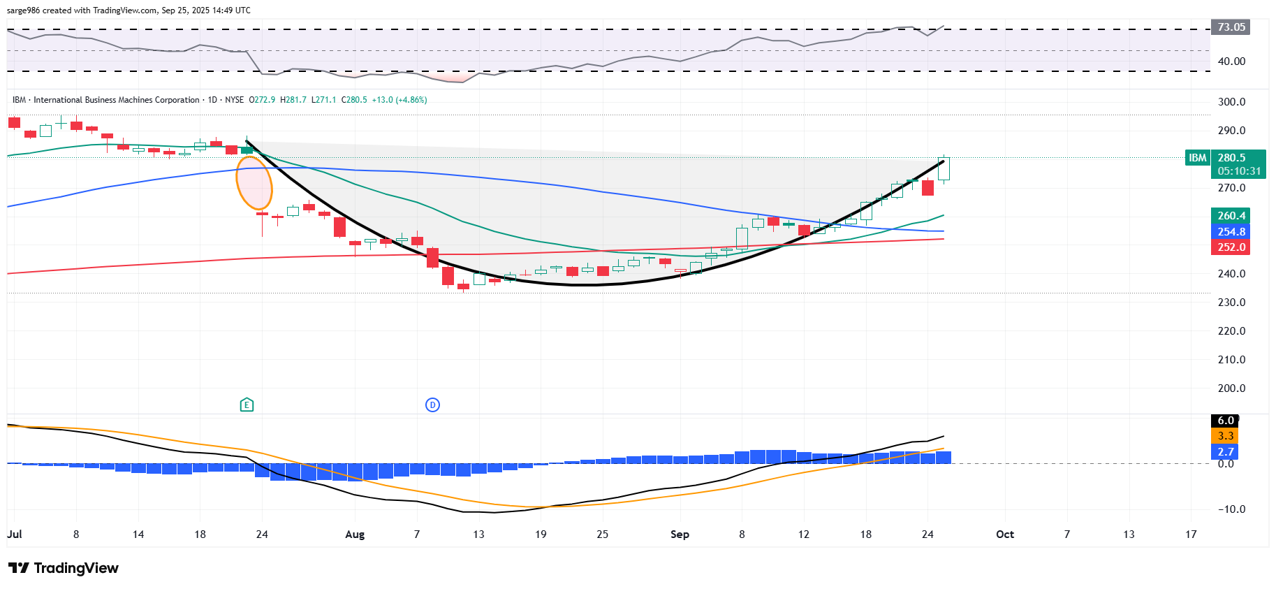 ​IBM has the best chart of all of them. I won't be afraid to initiate that name either. I will, though, wait to see if that Cup pattern adds a handle. That would be my opportunity to buy, while also creating a bullish pivot. Food for thought.