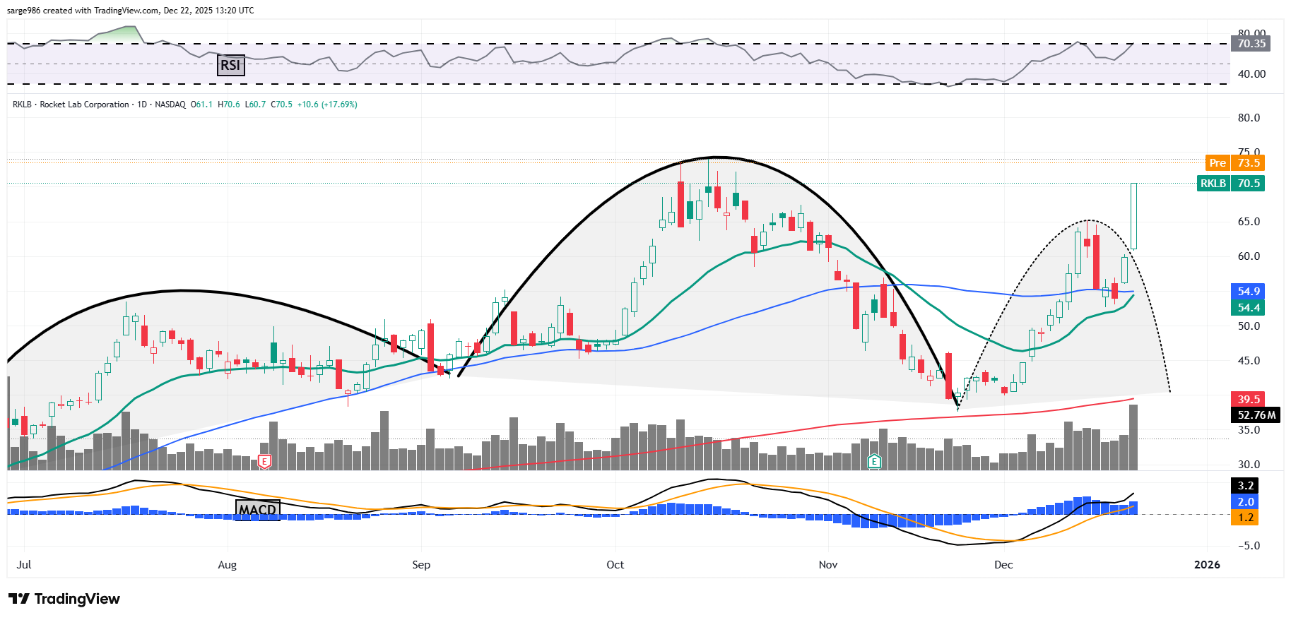 What a month for core Sarge-folio holding and core "Stocks Under $10" name Rocket Lab (RKLB) . I don't think I have ever had to cover one stock four times in one calendar month, but that's about to change. Back on Dec. 3, I wrote to the "Stocks Under $10" crowd, stating that "I am not running for the hills," but that I did see the potential for a still incomplete Head & Shoulders pattern to fully develop. That would have been a bearish signal for those new to technical analysis.