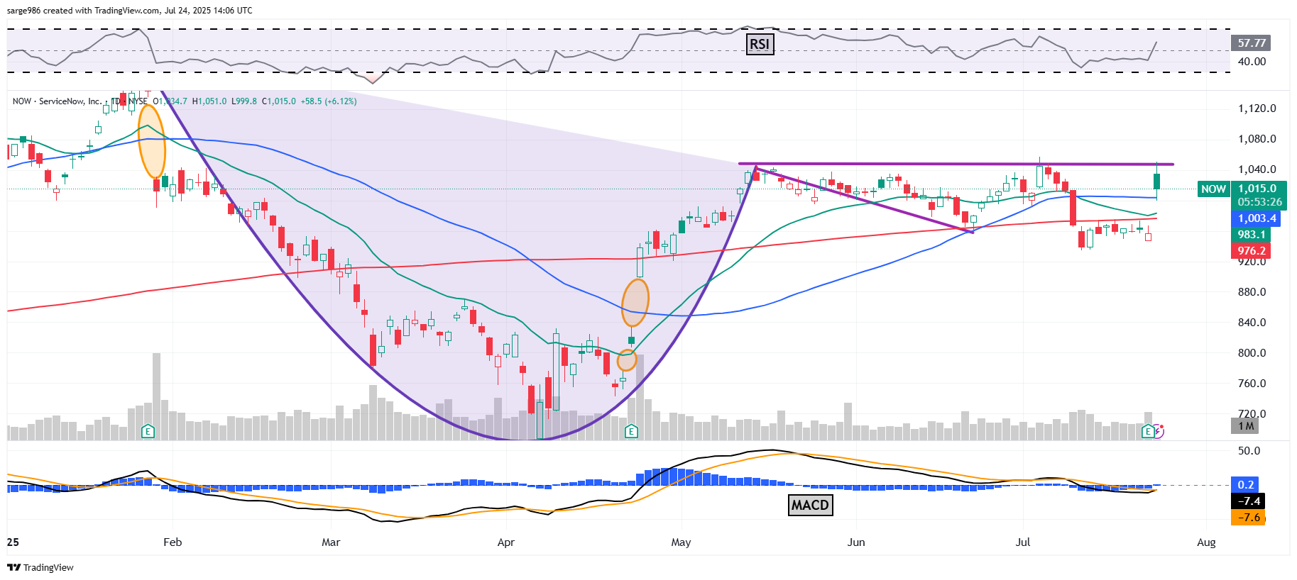 On Wednesday evening, ServiceNow NOW released the firm's second quarter financial results. I had been long the stock since the spring. It had failed to break out of a cup with handle pattern. I took my profits. Apparently, now, that was early and a tactical error.