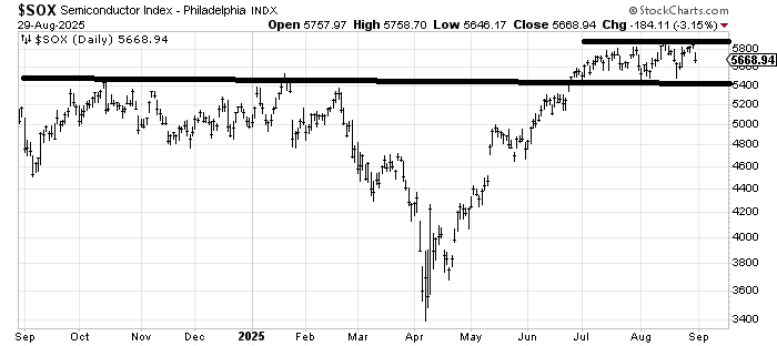 And I see the SOX is in the same place it was in early July. 5400 is still the support area, but when given the chance, it still stops at that 5800-ish area on the top end.
