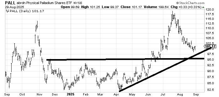 Finally, a reminder that PALL is coming into that support/buy area we looked at a few weeks ago.