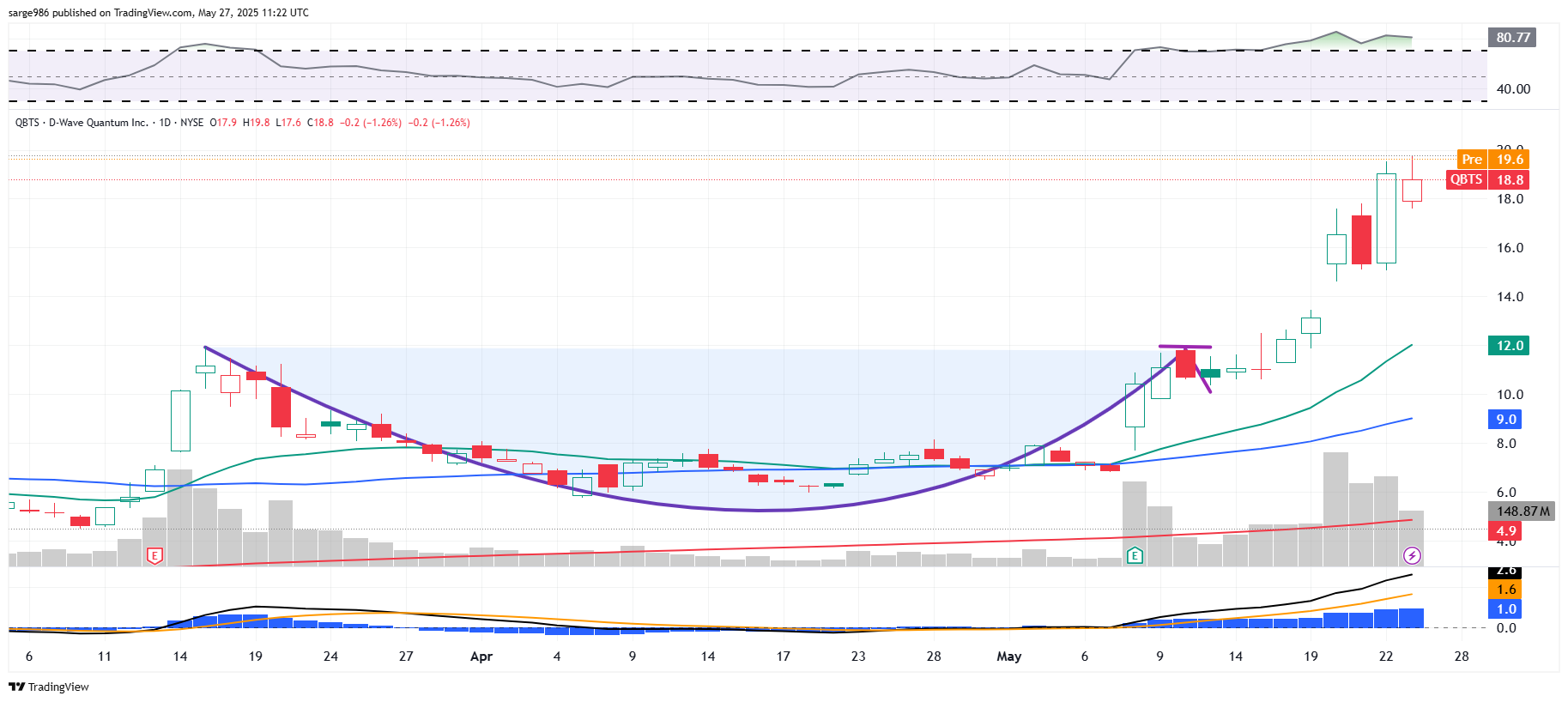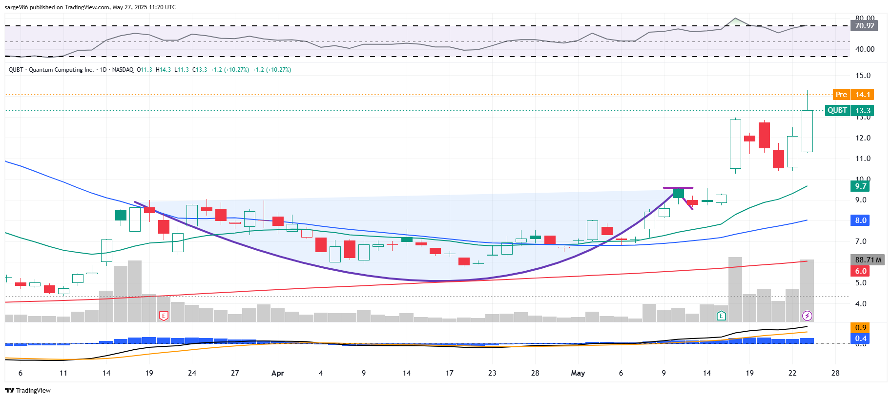 I made a premature exit from D-Wave that cost me the bulk of the recent surge on that stock's share price. However, I have traded in and out of Quantum Computing and have largely held on to those shares. As of Friday's close, month of May to date, D-wave was up 172%.