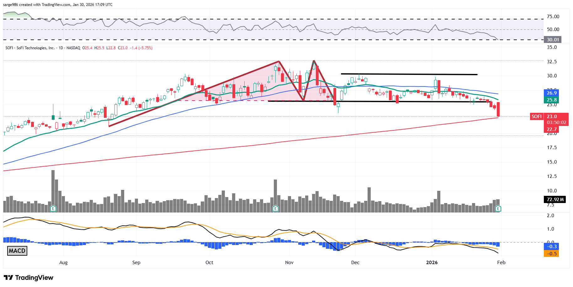 There is absolutely nothing in this report or in the guidance issued that would provoke me to sell any portion of my long position in SOFI. The firm is executing at an elite level under CEO Anthony Noto. Let's go to the chart: