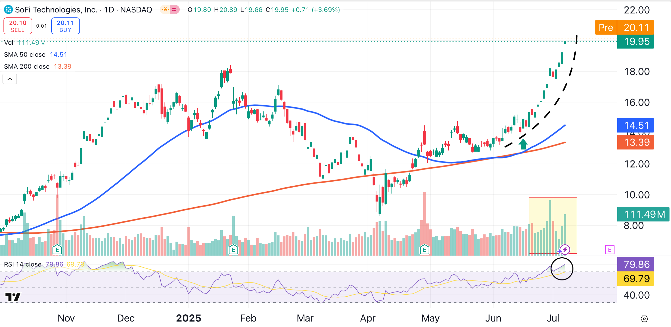 Since then, SoFi has rocketed higher for a 33% gain. Investors are asking, can this stock maintain its gains and soar even higher, or should traders take a cautious approach to SoFi?