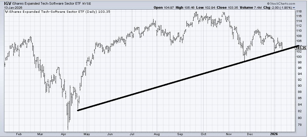 The biggest move to the downside came from software as a group. The group, in general, has done nothing in a year. If it wasn’t for the first quarter swoon in 2025, we’d be looking at this group thinking, Why do we bother?