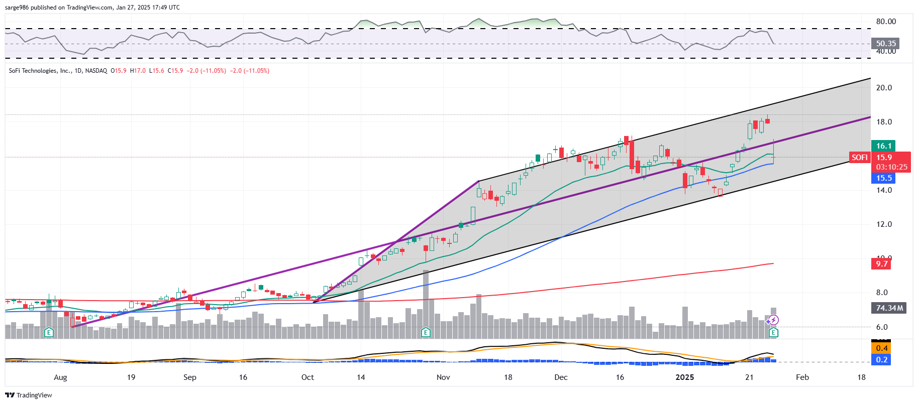 To answer your first question, yes, I have already added to my existing long position in SoFi Technologies SOFI on Monday morning's weakness.