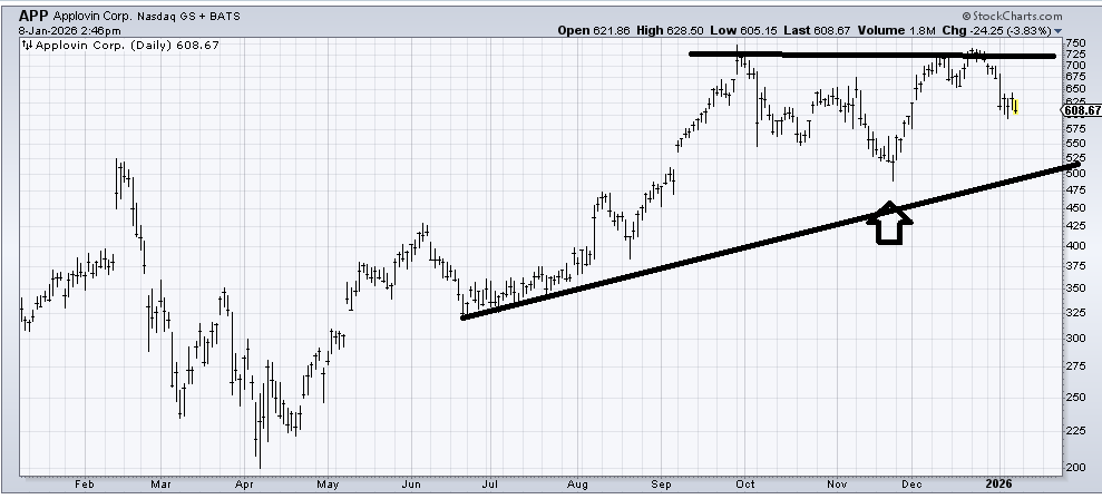 I would not be surprised if Applovin Corp (AAP) finds its way down to that line. It filled the gap (arrow), but I’d like to see a retest.