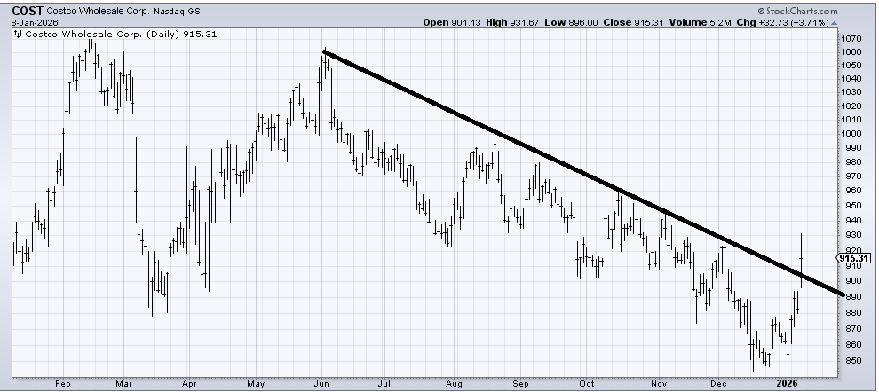 Let’s start with a follow-up on Costco (COST) , which finally crossed the line. As I said the other day, there is no breakout level because there is resistance all the way up. We just don’t want to see it trade back under that 890-ish area.