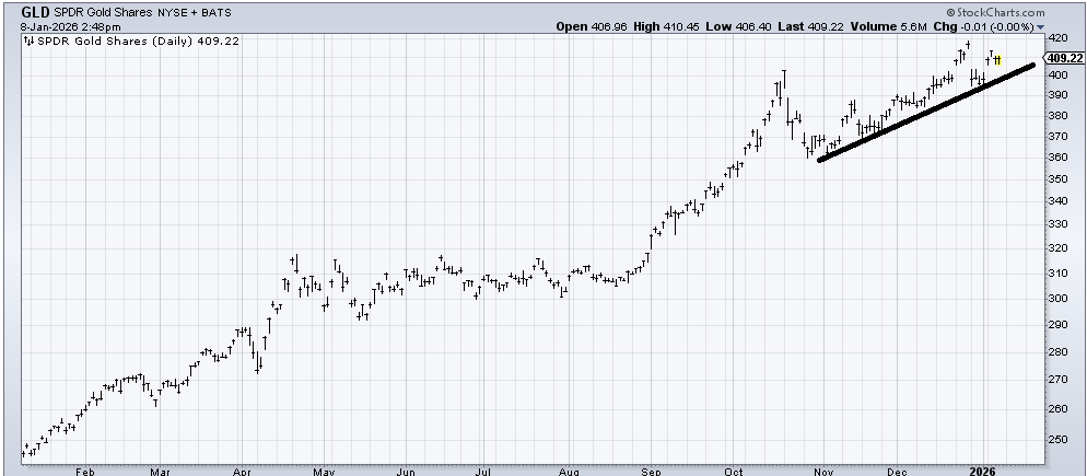 The chart of (GLD) , an ETF to be long gold, hasn’t done anything wrong. But I am not a fan of GLD here. I want to see a pattern set up, and I don’t like the sentiment having gotten giddy a few weeks ago, although that seems to have backed off.