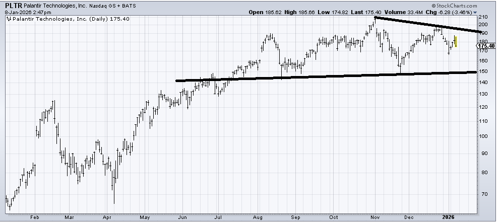 Palantir (PLTR) could use a push down to that 150 area. Obviously, if it gets up over that December high, I am wrong on that.