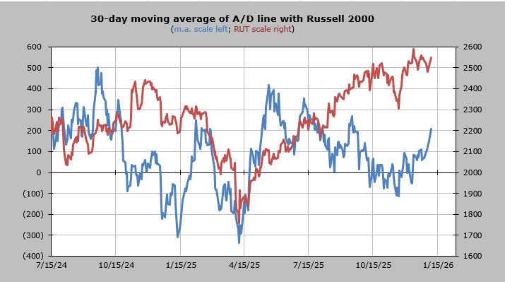 The 30-day moving average of the advance/decline line will be overbought by Wednesday.
