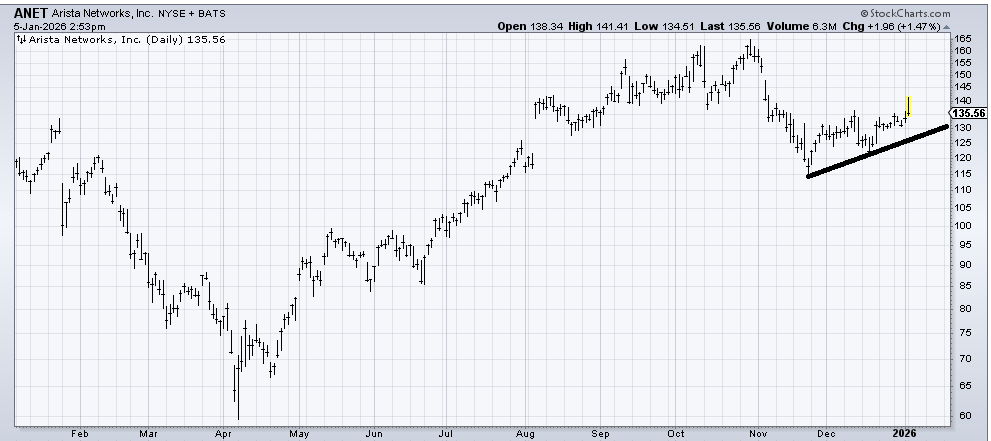 I don’t love the chart of Arista Networks (ANET) , but I think as long as it stays over 130, it has a shot at filling that gap up near 150.